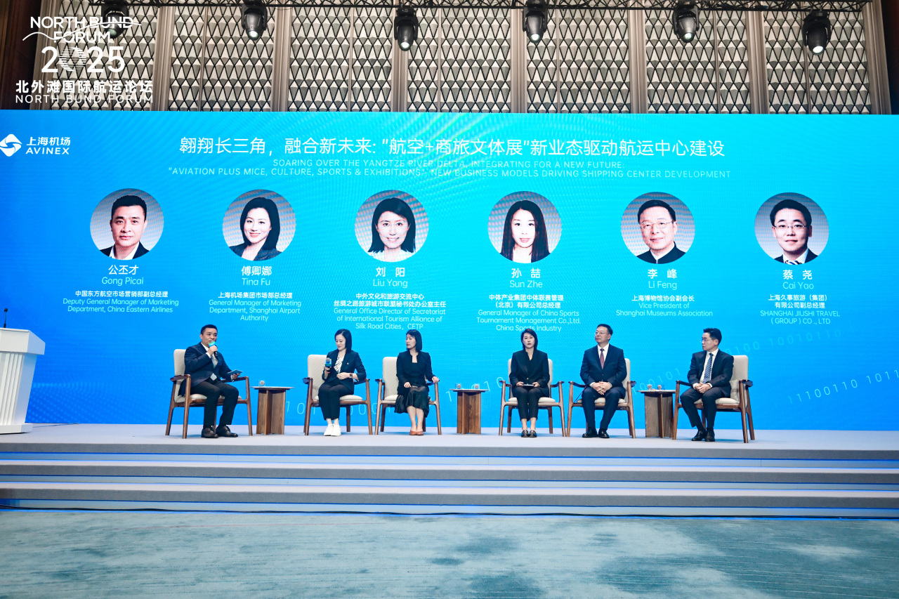 当前,“航空+商旅文体展”构建起“立体服务新生态”。在圆桌论坛环节中,上海机场、中外文化和旅游交流中心、中体产业集团、上海博物馆协会、上海久事集团等单位嘉宾齐聚一堂,以“翱翔长三角,融合新未来:‘航空+商旅文体展’新业态驱动航运中心建设”为主题,共同探讨业态创新实践,为“航空+”融合发展建言献策。