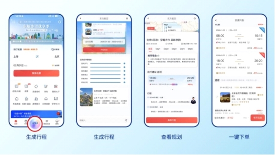 春节假期,旅客李先生计划“先回家团圆,再举家出游”。他打开东航APP,对首页的AI行程助手说:“春节后带老人和孩子去北京玩五天,预算二万。”短短十秒,一份涵盖往返航班、亲子酒店、休闲景点及特色美食的完整攻略便清晰呈现在李先生眼前。攻略中的机票与酒店可一键预订,也可随时调整,复杂的行程规划变得简单明了。